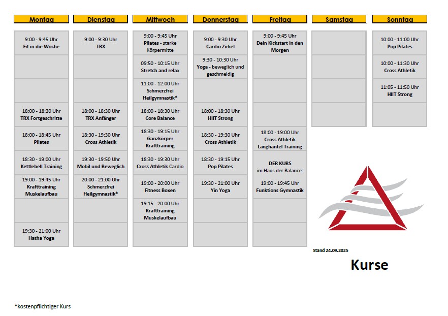 Liebe Mitglieder. Aktuell finden folgende Kurse statt.